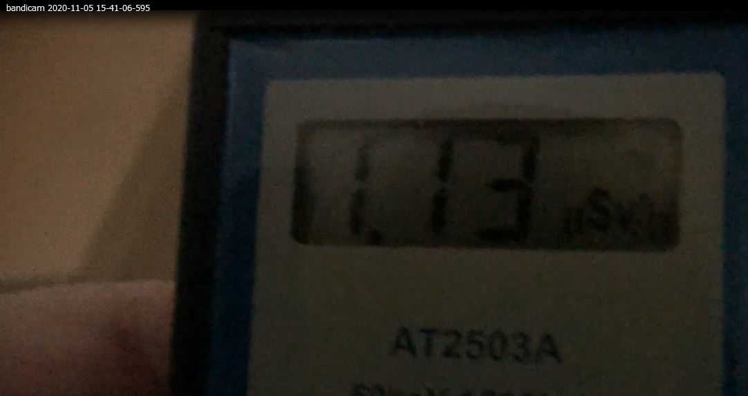 撮影をする為、ATOMTEX電源を入れると一瞬で1.1mSv被ばく。