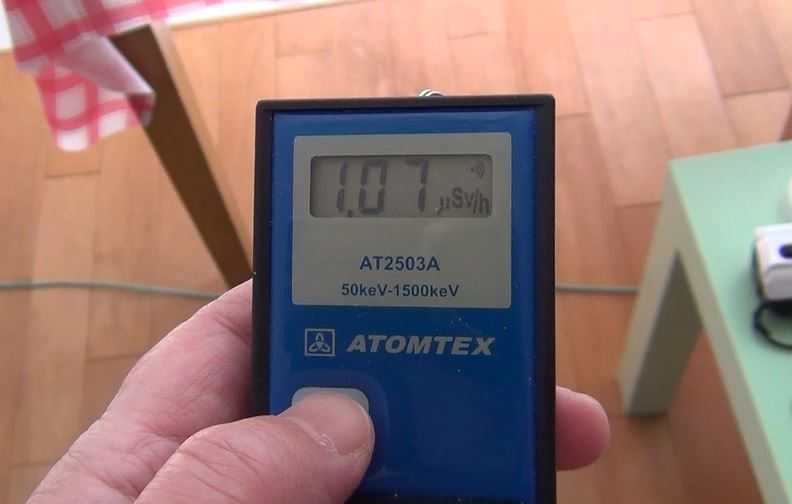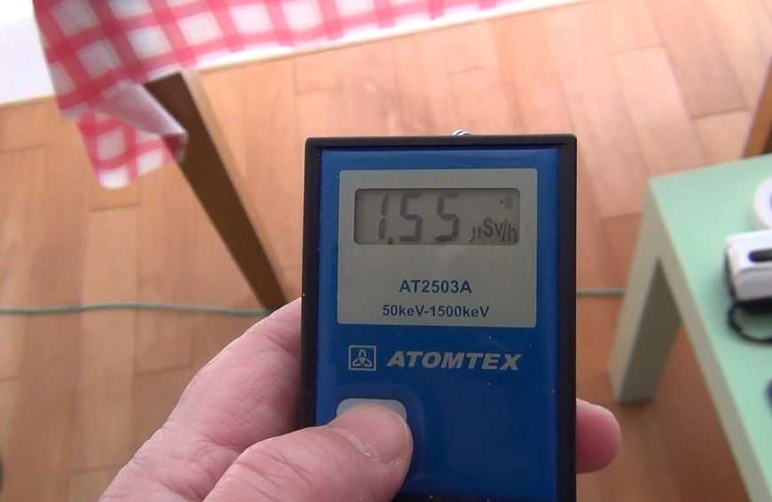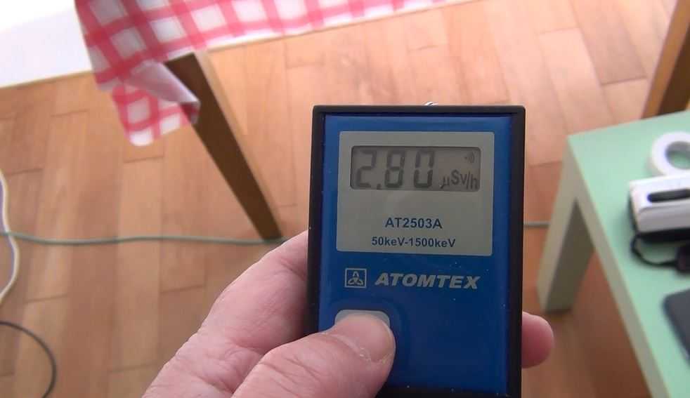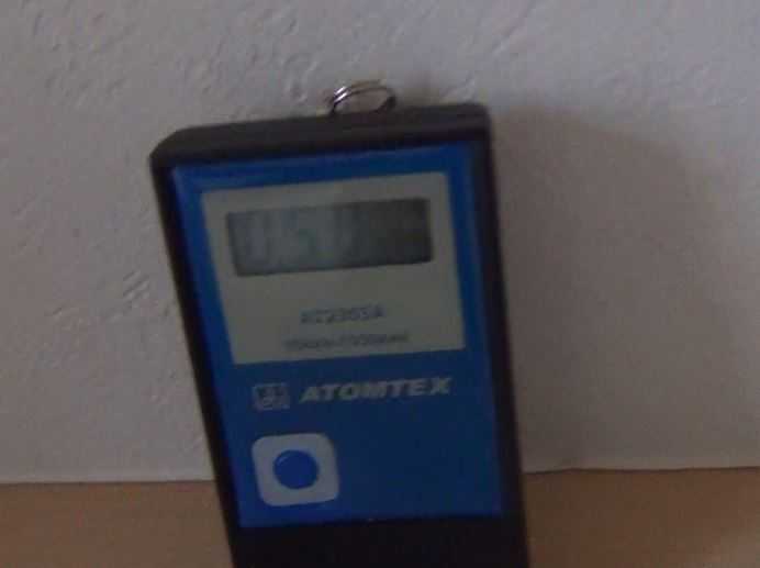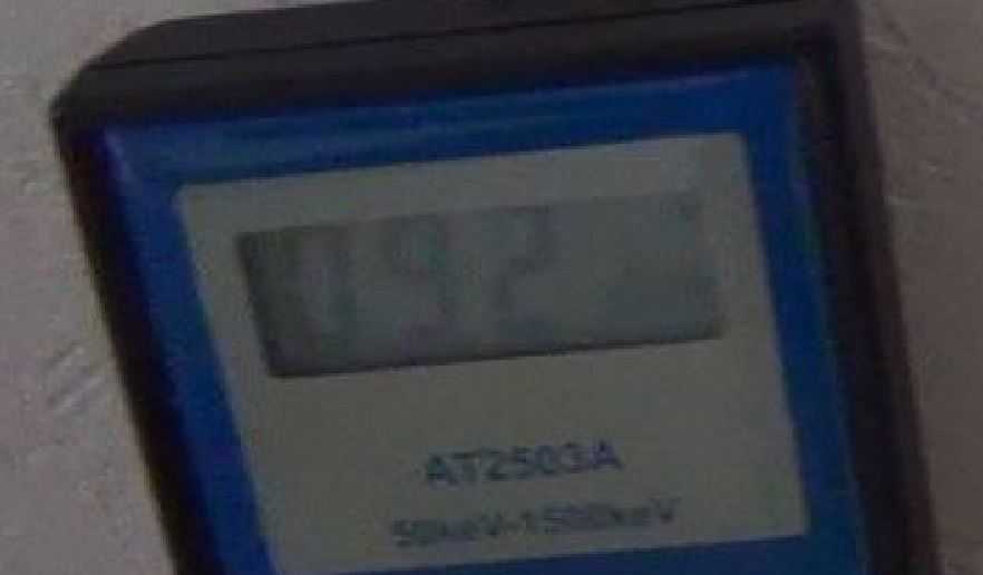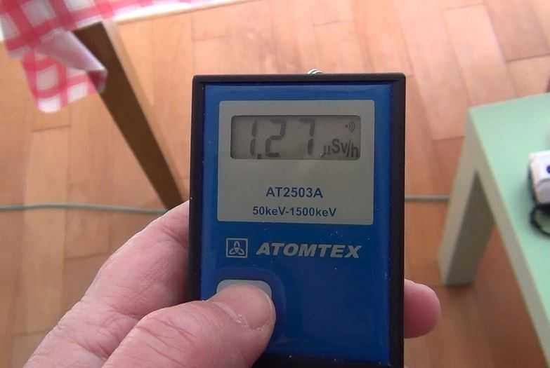 棚に置くと0.92μSv/hですがガイガーカウンターを見ると移動して触れた棚の小型ICチップと